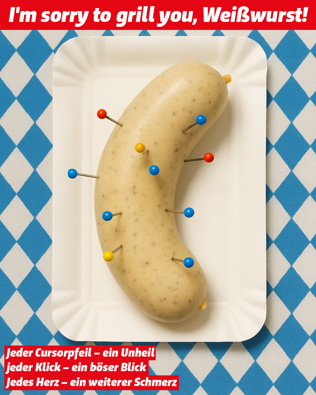 „Can the Subaltern Hex?” ist ein digitales Ritualprojekt, das die kollektive Verfluchung als Form des Widerstands erforscht. Ausgangspunkt ist die Weißwurst, Fetisch deutscher Selbstzufriedenheit, die zur Voodoo-Puppe wird. Online schließen sich User auf Instagram zu einem virtuellen Zirkel zusammen, um kollektive Aufmerksamkeit auf die Wurst zu richten. Jede Interaktion – Likes, Kommentare, Story-Reaktionen – wird Teil eines performativen Hexrituals.
